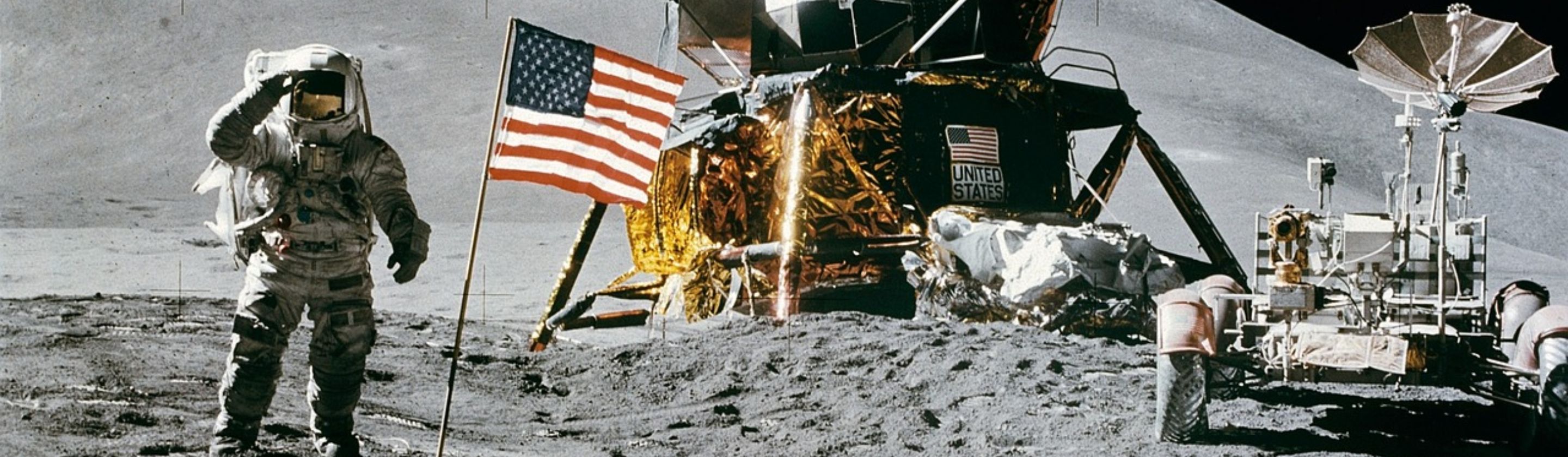 The American flag that the astronauts planted on the moon was made specially for the moon landing by Sears. An aluminum rod holds the flag open so it appears to be flapping in the moon's nonexistent breeze.